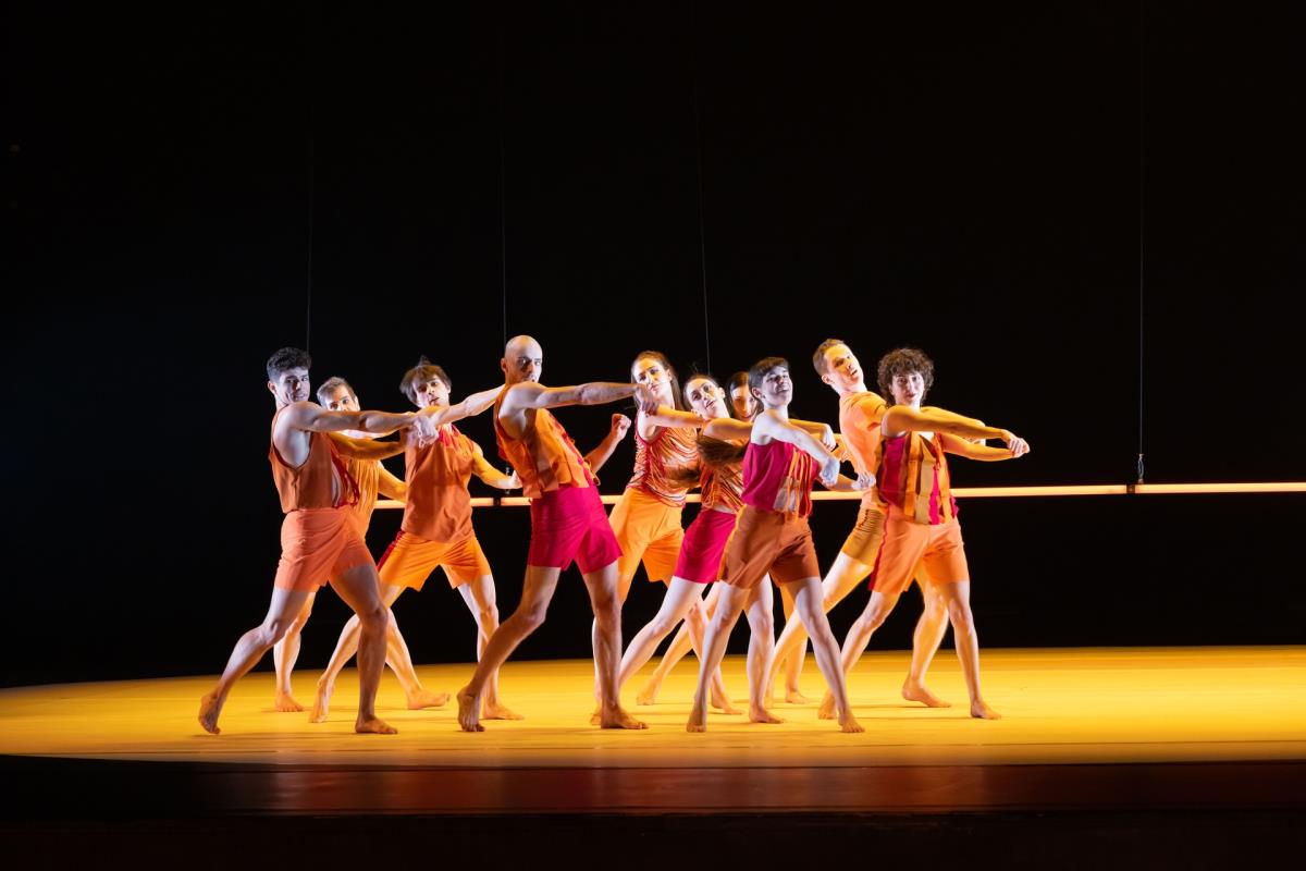 “In FLAM.ME.UM, colori accattivanti e tagli di costumi aderenti si combinano per creare un'armoniosa ondulazione di corpi, in cui i momenti di simmetria del movimento lasciano trasparire la struttura interna ed emergere la poesia del movimento.”