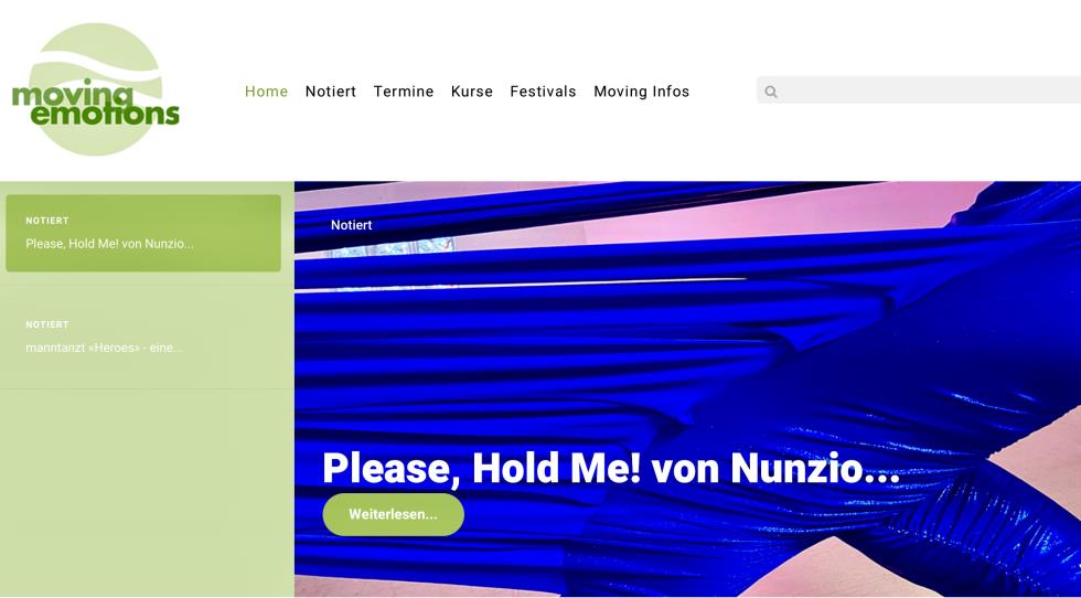 In seinem Duo PLEASE, HOLD ME für eine Tänzerin und einen Zuschauer ist der Titel Programm. Eine weitere Hauptrolle besetzt das Kostüm. Mittels dessen „Tragweite“ wird auch die Person aus der Zuschauergruppe in die Performance integriert, Tänzerin und Zuschauer bewegen sich zu- und miteinander, ganz im Duktus, Nähe ohne direkten Kontakt herzustellen. Während der einzelnen 15-minütigen Sequenzen ergeben sich immer neue, unwiederholbare Bilder, Architekturen, tanzende Skulpturen. Die Performance wirkt wie eine Metapher für die Kernfragen unserer Tage. Der kulturpolitische Aspekt „Wer unterstützt hier eigentlich wen?“ taucht auf, doch das Stück ist vielschichtiger und keinesfalls auf das Pandemiethema zu reduzieren. (...)